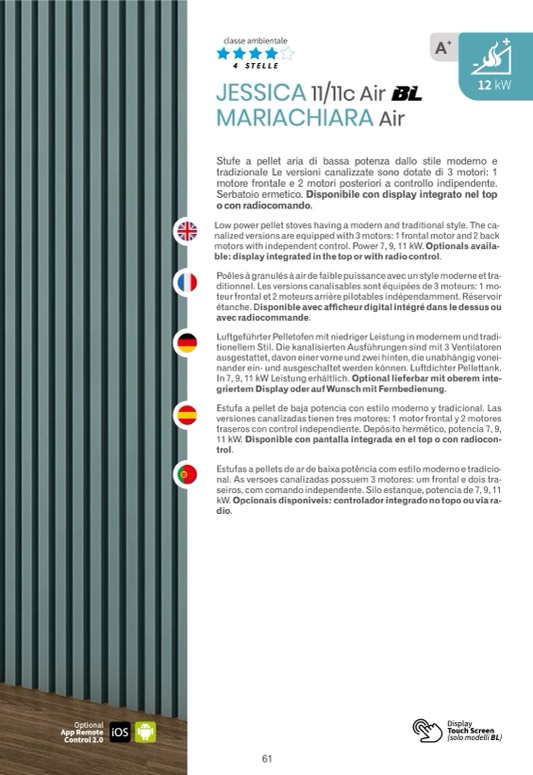11 kW. Disponible con pantalla integrada en el top o con radiocon-