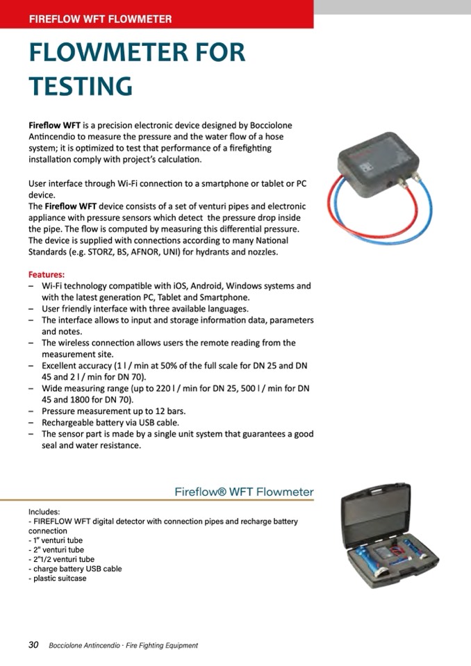 - FIREFLOW WFT digital detector with connection pipes and recharge battery