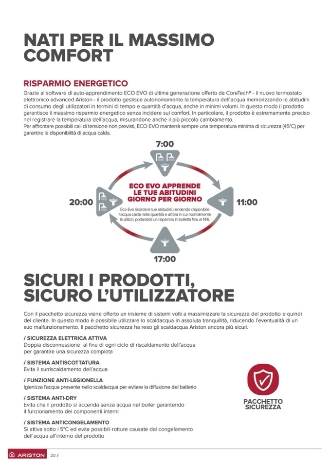 suo malfunzionamento. Il pacchetto sicurezza ha reso gli scaldacqua Ariston ancora più sicuri.