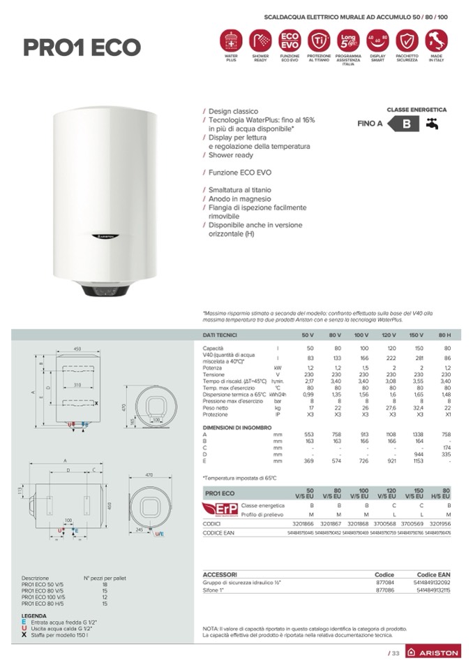 NOTA: Il valore di capacità riportato in questo catalogo identifica la categoria di prodotto.