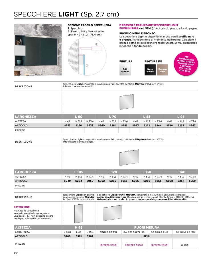 SPECCHIERE LIGHT (Sp. 2,7 cm)