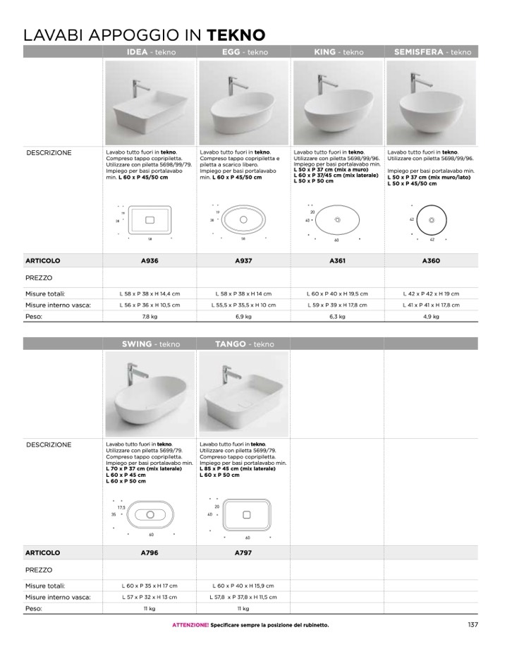 ATTENZIONE! Specificare sempre la posizione del rubinetto.