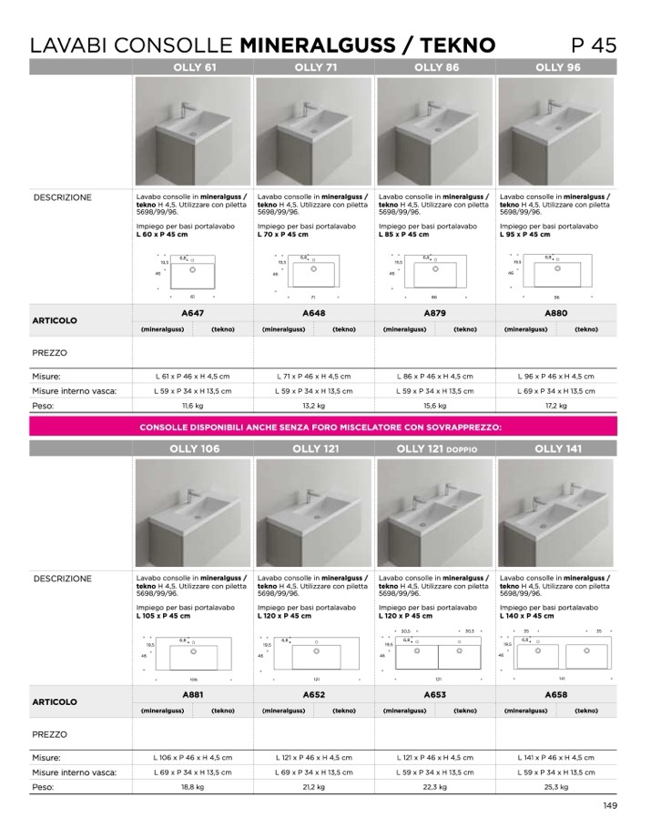 CONSOLLE DISPONIBILI ANCHE SENZA FORO MISCELATORE CON SOVRAPPREZZO: