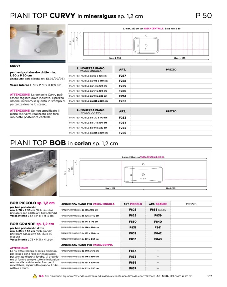 N.B. Per piani fuori squadra l’azienda realizzerà ed invierà al cliente una dima da controfirmare. Art. DIMA, del costo al m