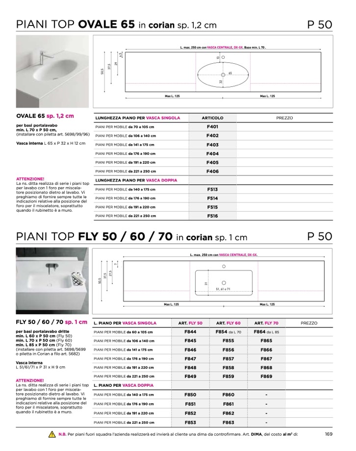 N.B. Per piani fuori squadra l’azienda realizzerà ed invierà al cliente una dima da controfirmare. Art. DIMA, del costo al m