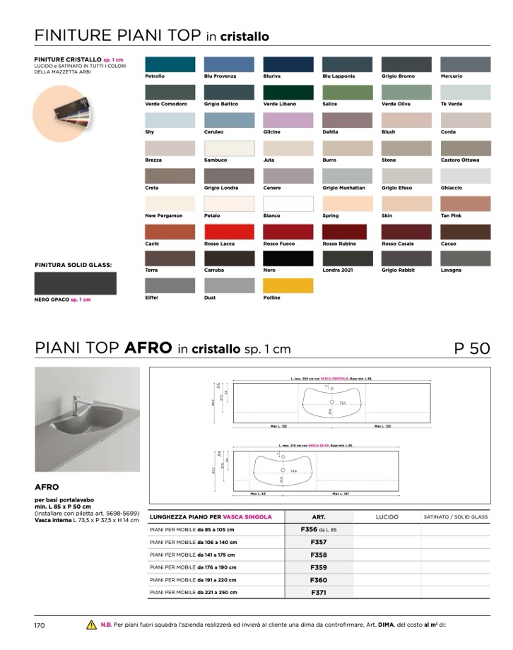 N.B. Per piani fuori squadra l’azienda realizzerà ed invierà al cliente una dima da controfirmare. Art. DIMA, del costo al m