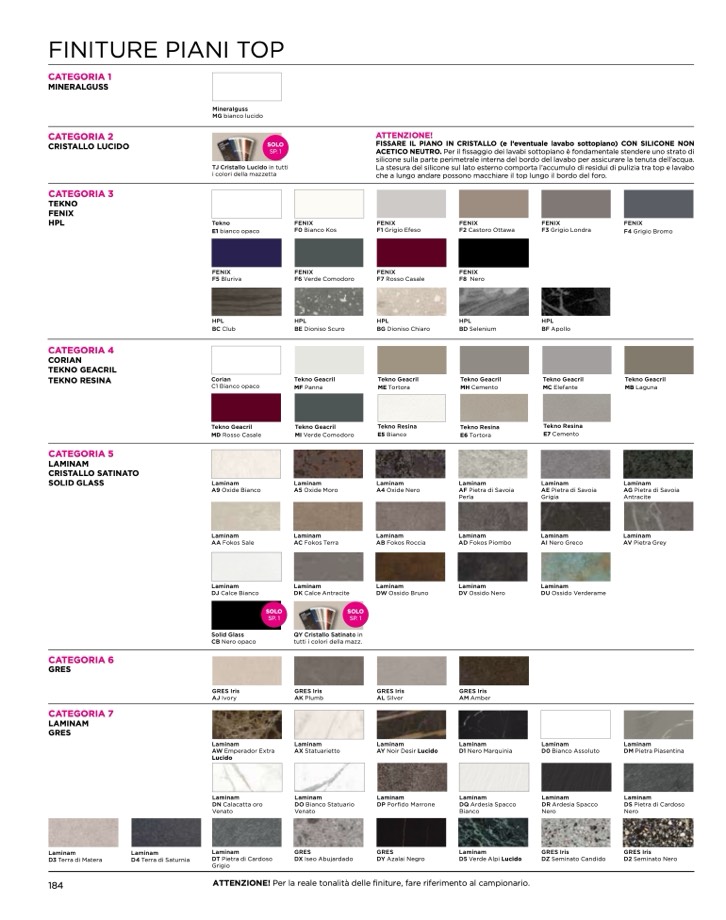 ATTENZIONE! Per la reale tonalità delle finiture, fare riferimento al campionario.