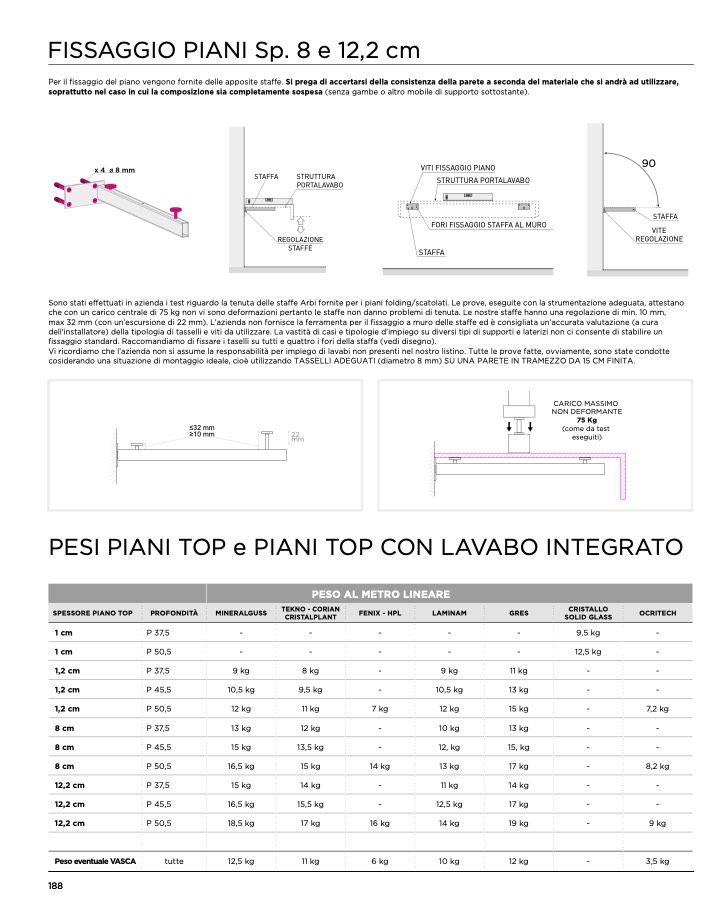 Per il fissaggio del piano vengono fornite delle apposite staffe. Si prega di accertarsi della consistenza della parete a seconda del materiale che si andrà ad utilizzare,
