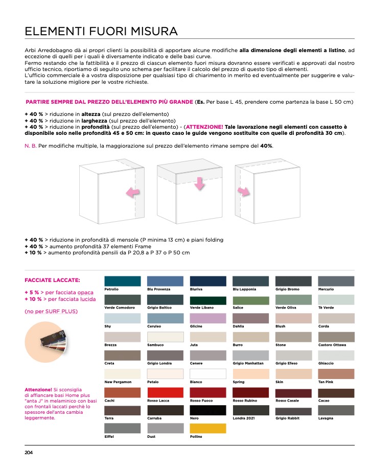 Arbi Arredobagno dà ai propri clienti la possibilità di apportare alcune modifiche alla dimensione degli elementi a listino, ad
