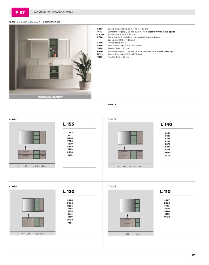 C. 02 - L15 LEGNO DOLADA - L 170 x P 37 cm