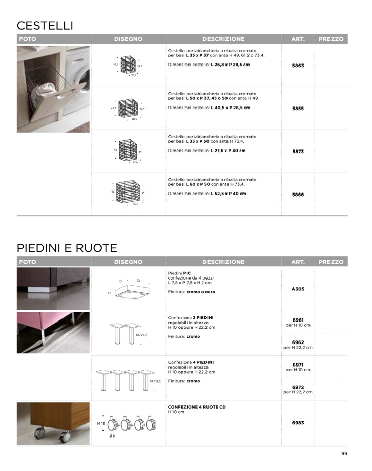 per basi L 60 x P 50 con anta H 73,4.