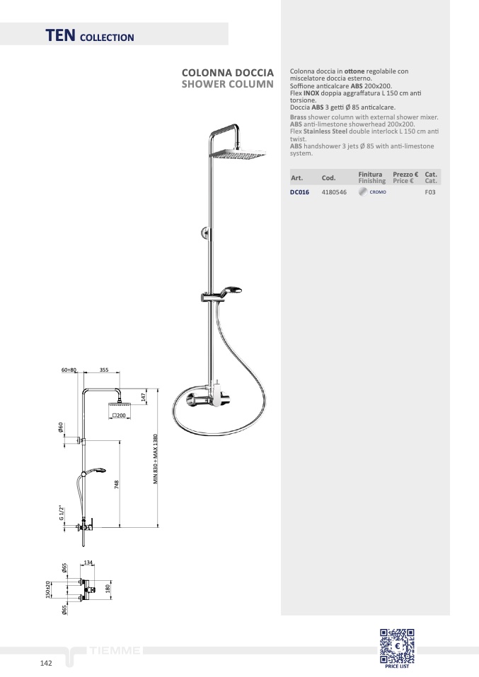 ABS handshower 3 jets Ø 85 with anti-limestone