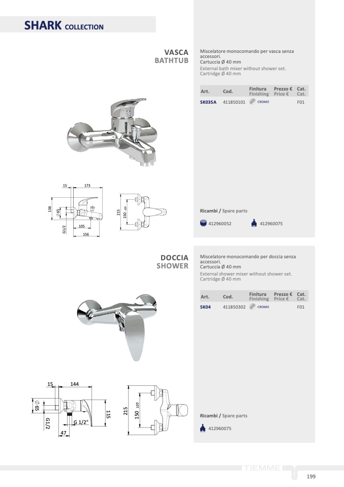 Miscelatore monocomando per doccia senz