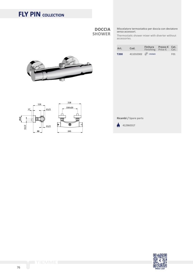 tic shower mixer with diverter withou
