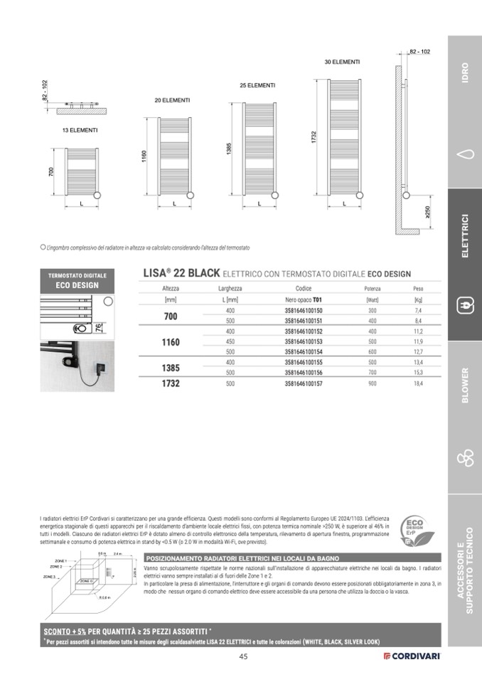 I radiatori elettrici ErP Cordivari si caratterizzano per una grande efficienza. Questi modelli sono conformi al Regolamento Europeo UE 2024/1103. L’efficienza