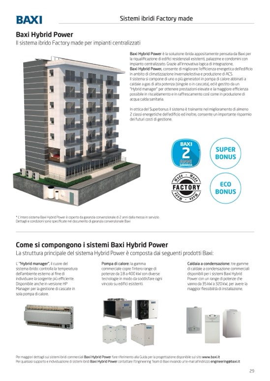 Per maggiori dettagli sui sistemi ibridi commerciali Baxi Hybrid Power fare riferimento alla Guida per la progettazione disponibile sul sito www.baxi.it