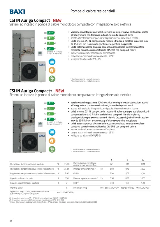 * In caso di temperature particolarmente rigide inferiori a -5°C si consiglia di installare l’accessorio Kit antigelo CSI IN cod. 7213615