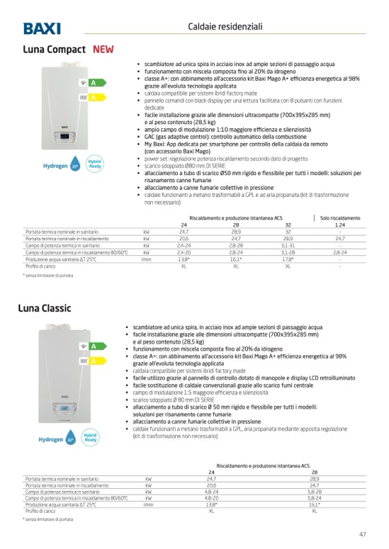 • classe A+: con abbinamento all’accessorio kit Baxi Mago A+ efficienza energetica al 98%