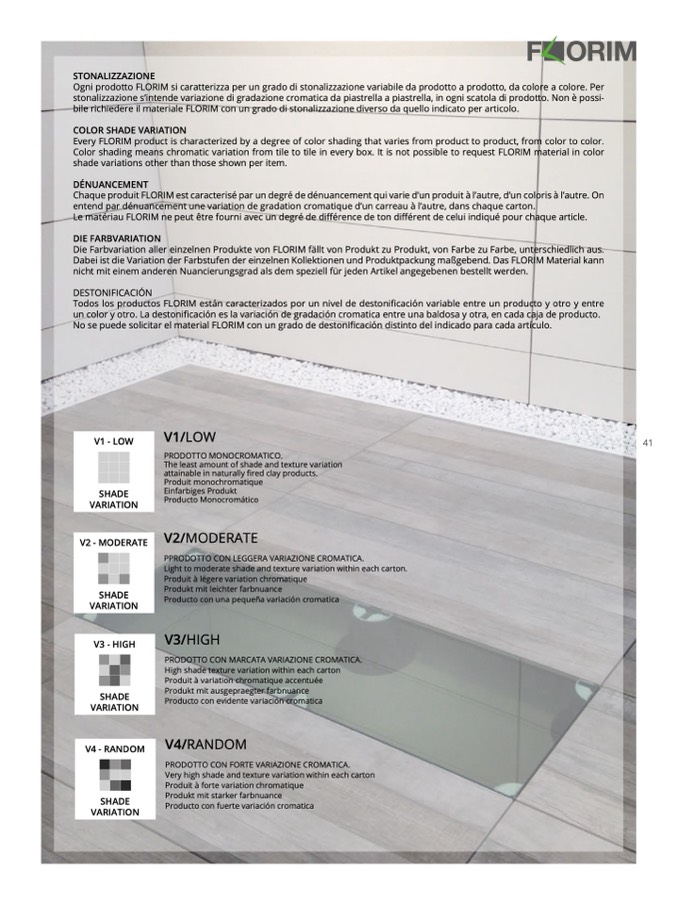 Ogni prodotto FLORIM si caratterizza per un grado di stonalizzazione variabile da prodotto a prodotto, da colore a colore. Per