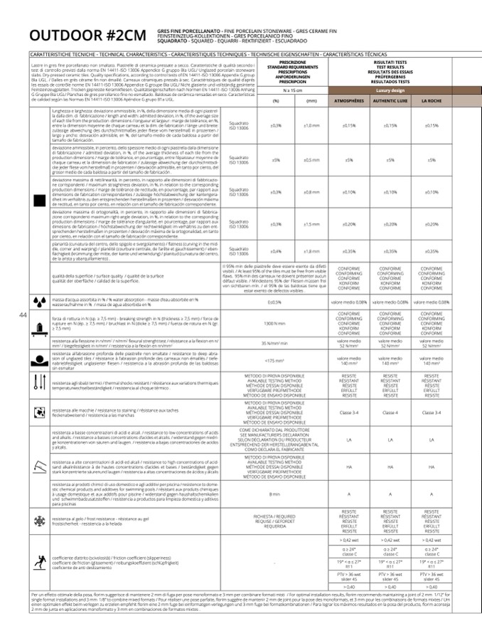 test di controllo previsti dalla norma EN 14411-ISO 13006 Appendice G gruppo BIa UGL/ Unglazed porcelain stonewar