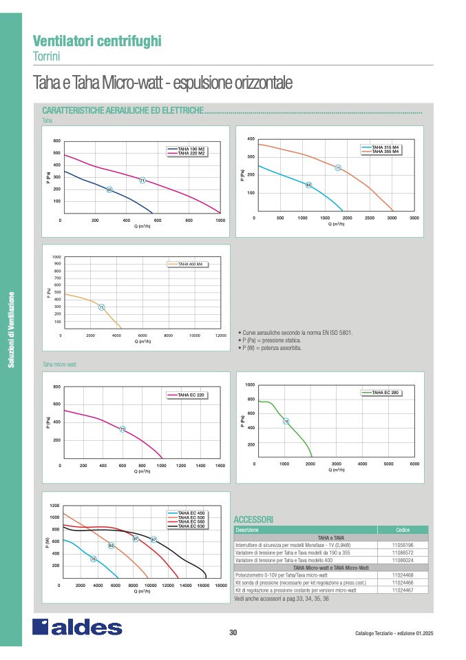• Curve aerauliche secondo la norma EN ISO 5801.