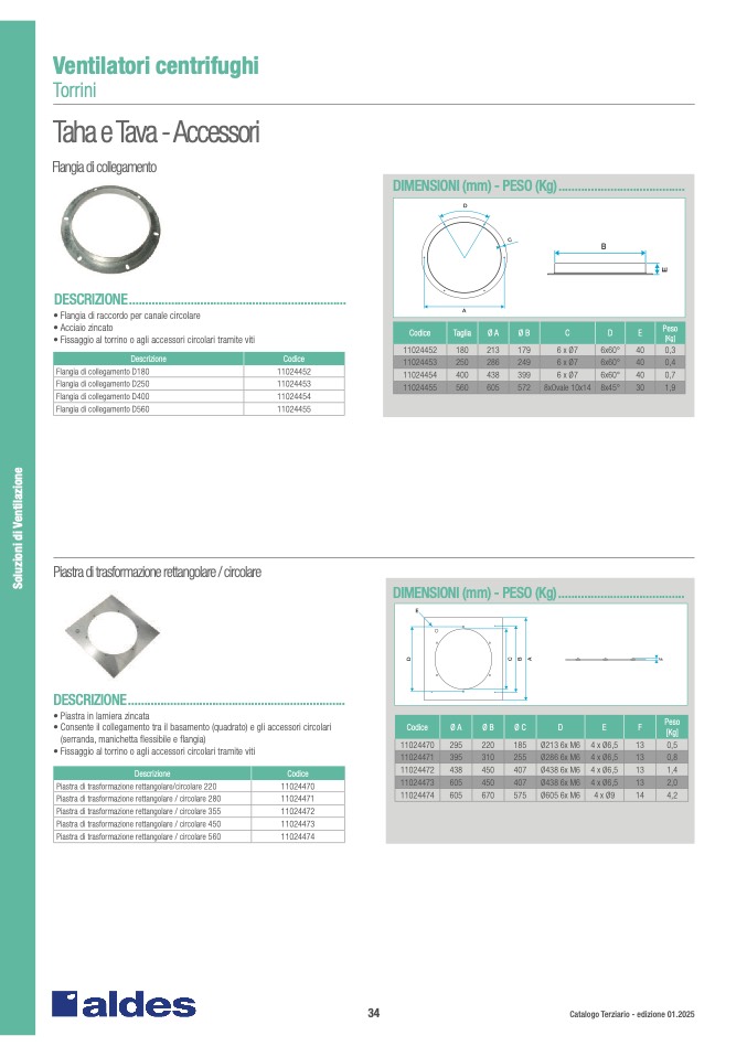 Piastra di trasformazione rettangolare / circolare 560