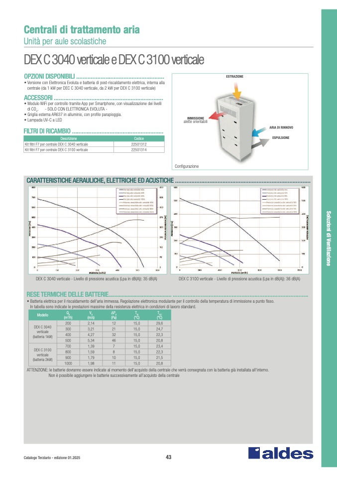 centrale (da 1 kW per DEC C 3040 verticale, da 2 kW per DEX C 3100 verticale