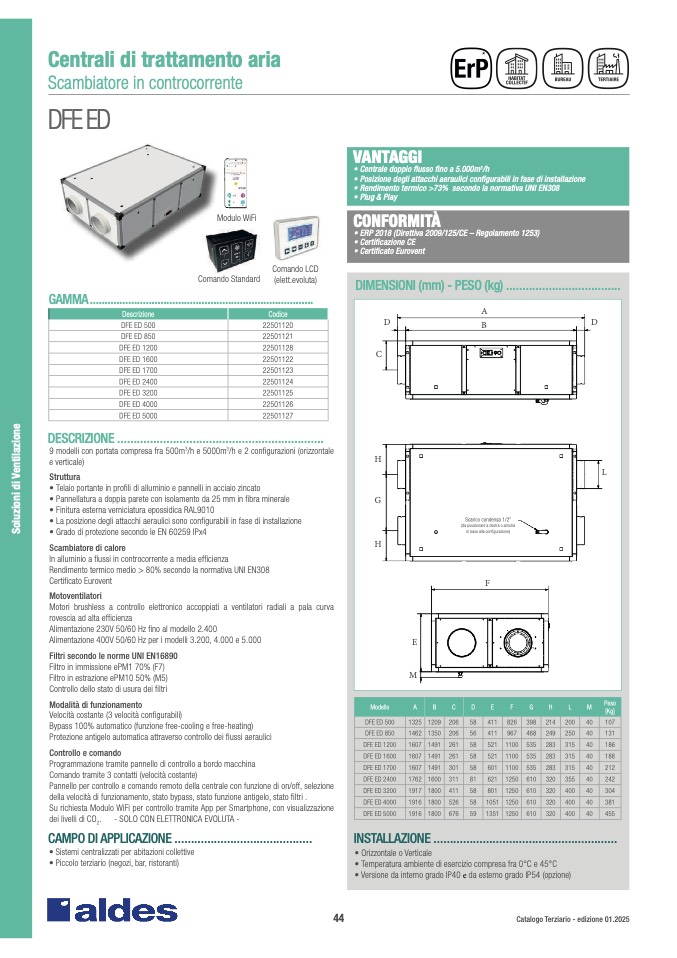 9 modelli con portata compresa fra 500m3/h e 5000m3/h e 2 con