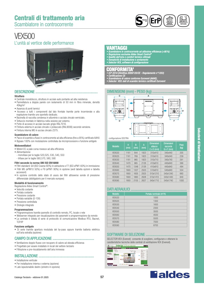 caratteristiche tecniche delle centrali di ventilazione VEX (Everest)