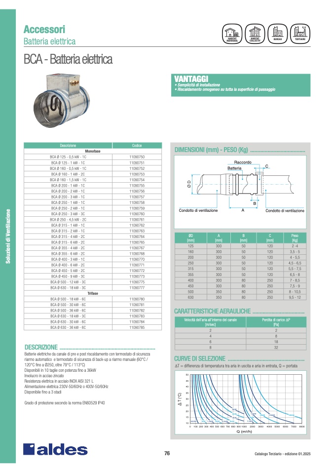 Batterie elettriche da canale di pre e post riscaldamento con termostato di sicurezz