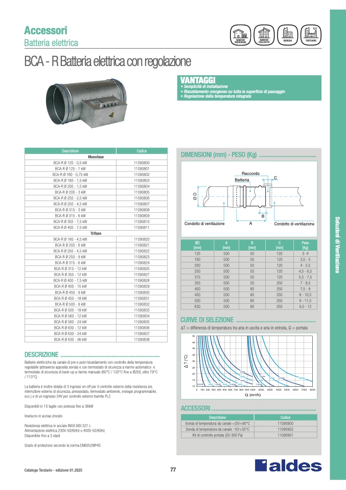 Batterie elettrciche da canale di pre e post riscaldamento con controllo della temperatur
