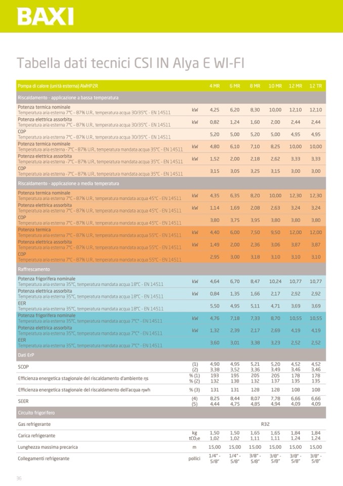 Temperatura aria esterna 7°C – 87% U.R., temperatura mandata acqua 55°C - EN 14511