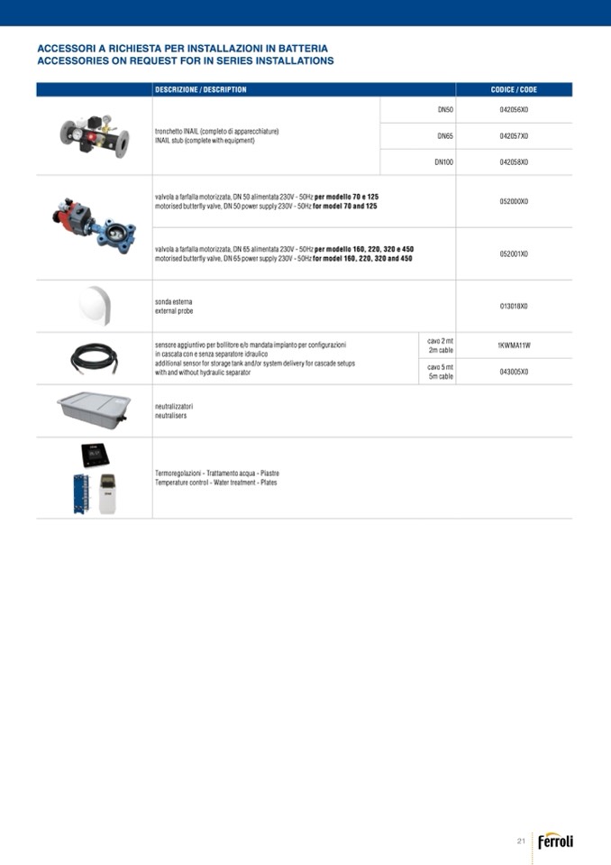 ACCESSORI A RICHIESTA PER INSTALLAZIONI IN BATTERIA
