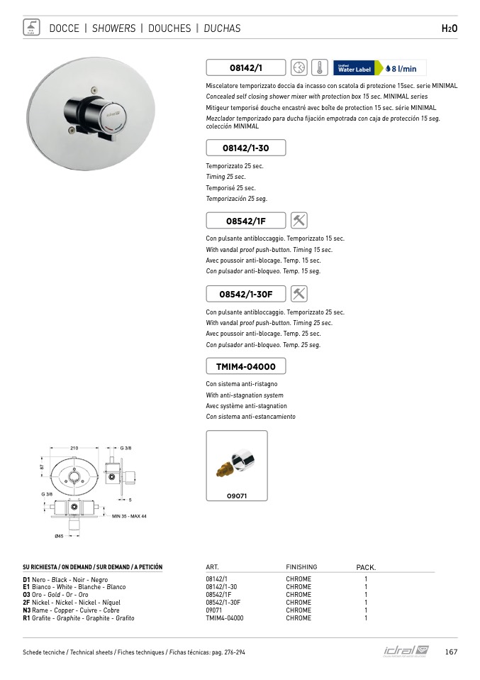 Miscelatore temporizzato doccia da incasso con scatola di protezione 15sec. serie MINIMAL