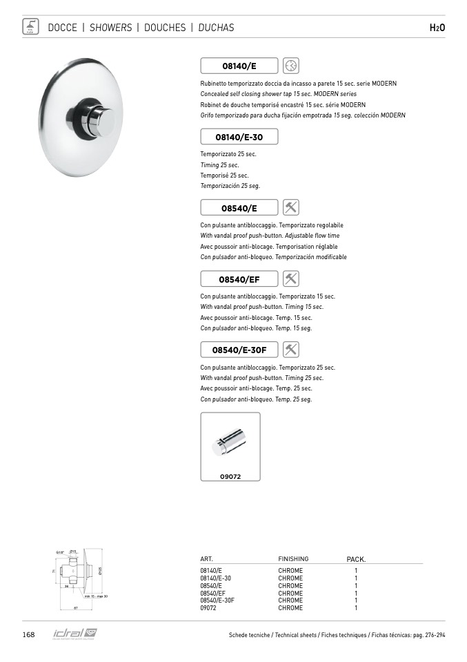 Grifo temporizado para ducha fijación empotrada 15 seg. colección MODERN