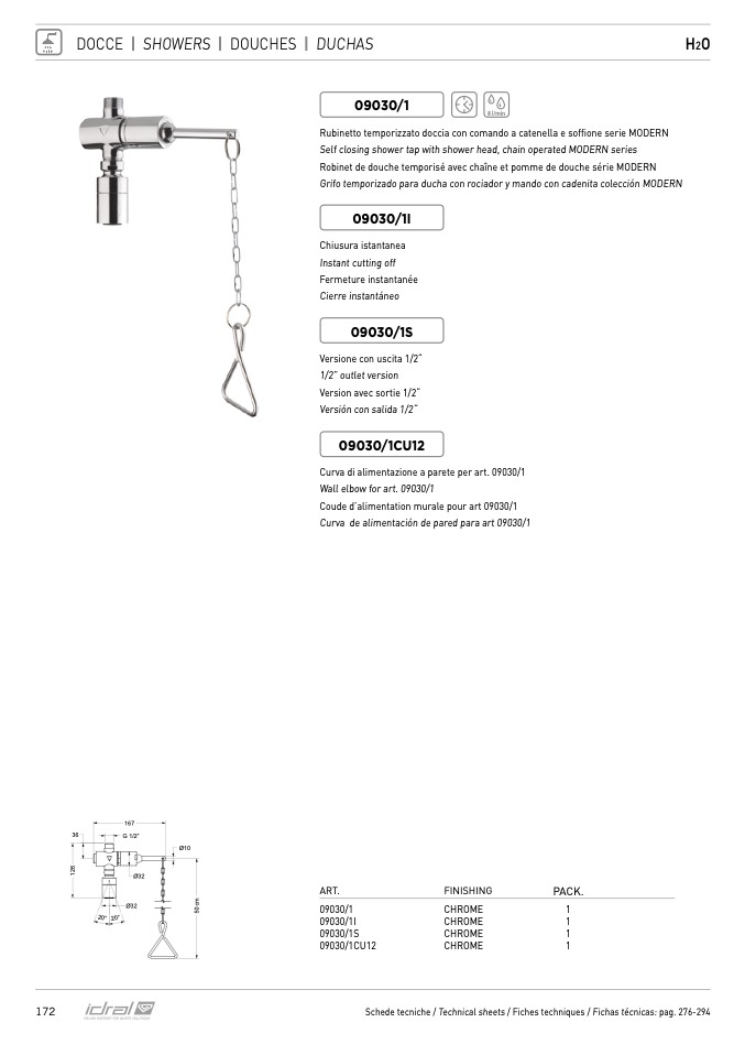 Rubinetto temporizzato doccia con comando a catenella e soffione serie MODERN