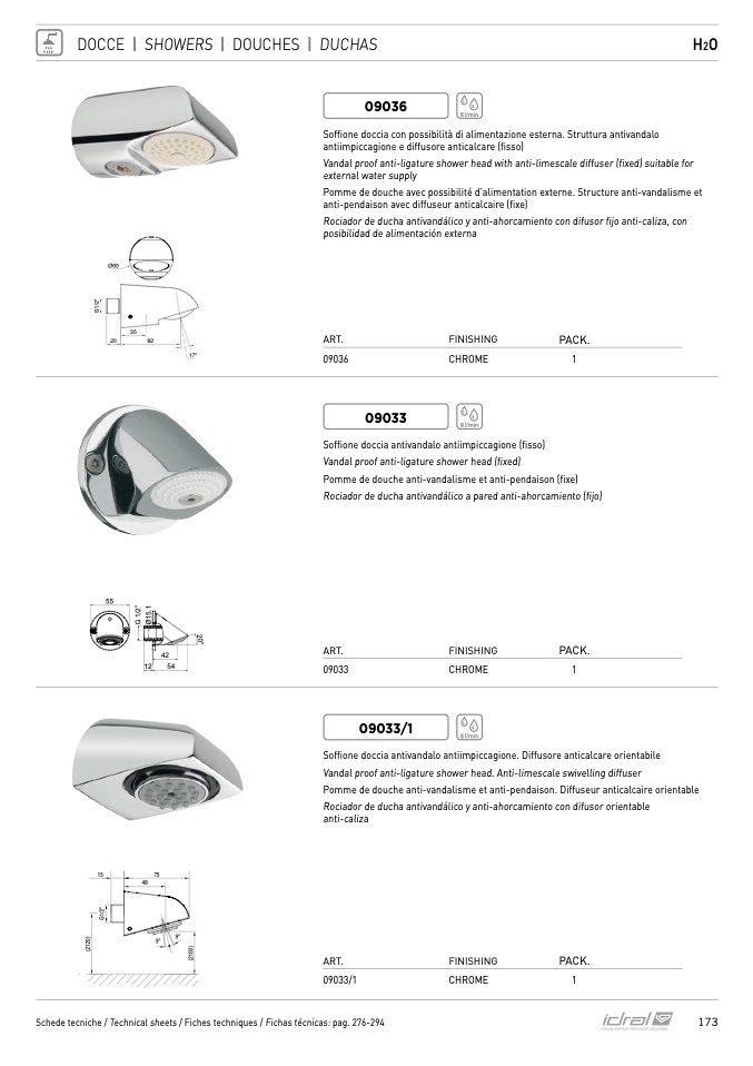 Schede tecniche / Technical sheets / Fiches techniques / Fichas técnicas: pag. 276-294