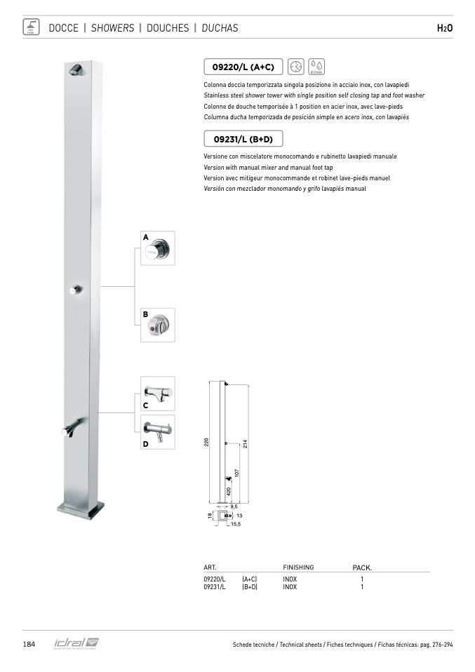 Schede tecniche / Technical sheets / Fiches techniques / Fichas técnicas: pag. 276-294
