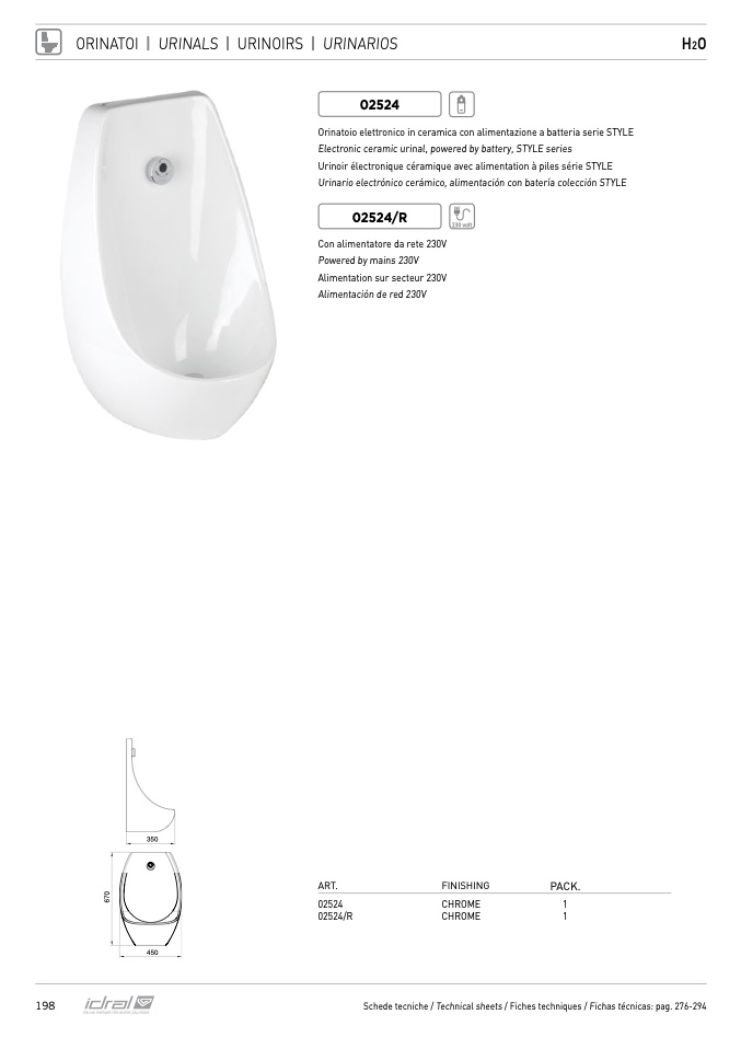 Urinario electrónico cerámico, alimentación con batería colección STYLE