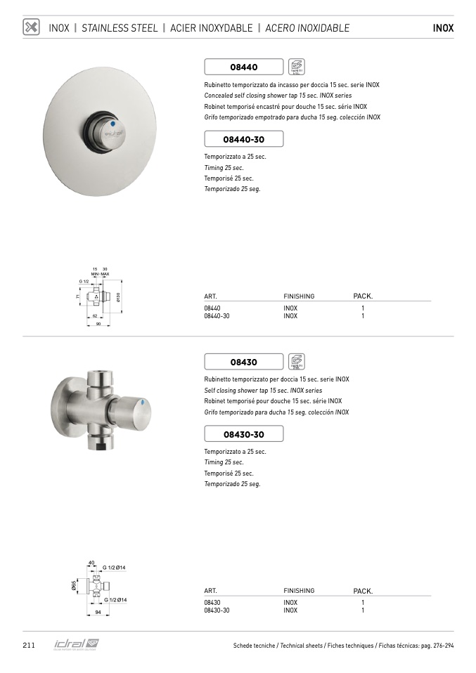 Concealed self closing shower tap 15 sec. INOX series