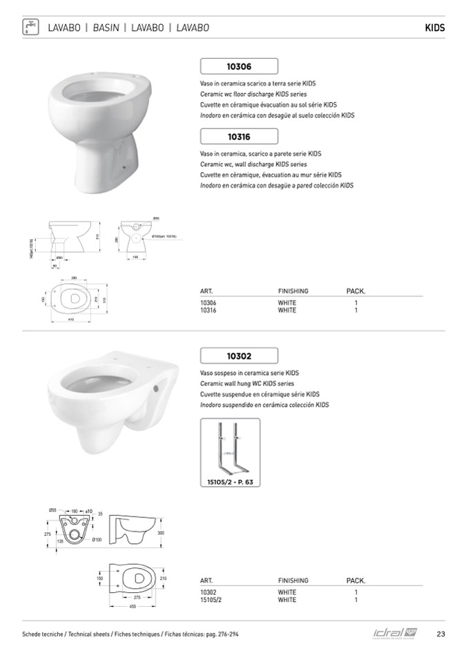 Inodoro en cerámica con desagüe al suelo colección KIDS