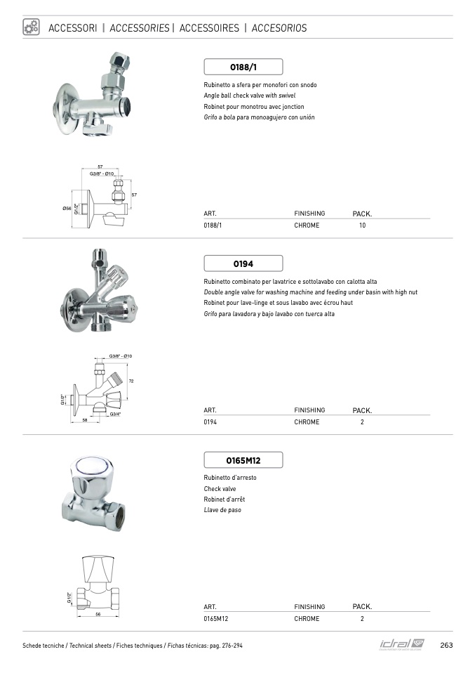 Schede tecniche / Technical sheets / Fiches techniques / Fichas técnicas: pag. 276-294
