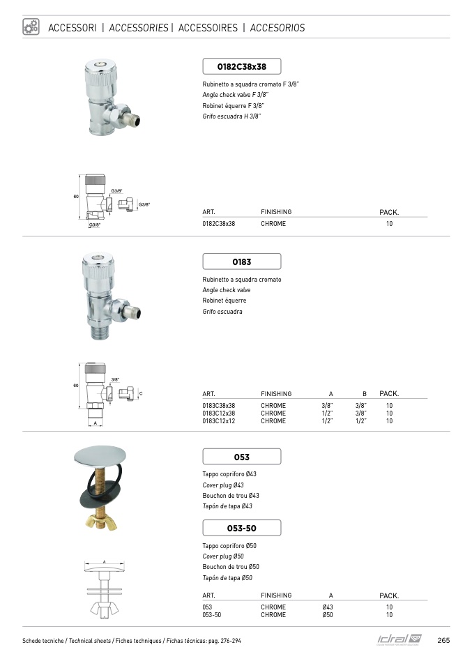 Schede tecniche / Technical sheets / Fiches techniques / Fichas técnicas: pag. 276-294