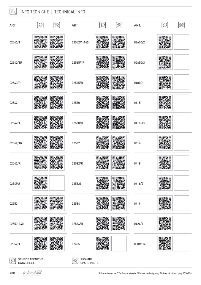 Schede tecniche / Technical sheets / Fiches techniques / Fichas técnicas: pag. 276-294