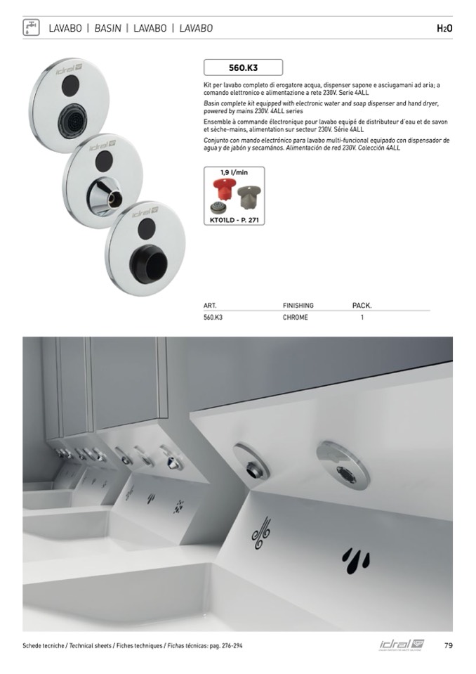 agua y de jabón y secamános. Alimentación de red 230V. Colección 4ALL