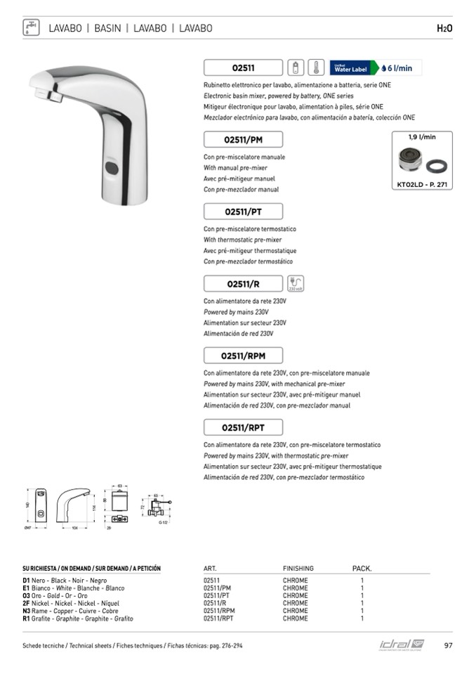 Schede tecniche / Technical sheets / Fiches techniques / Fichas técnicas: pag. 276-294