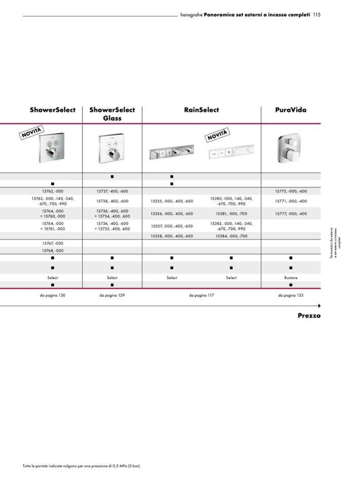 Tutte le portate indicate valgono per una pressione di 0,3 MPa (3 bar).
