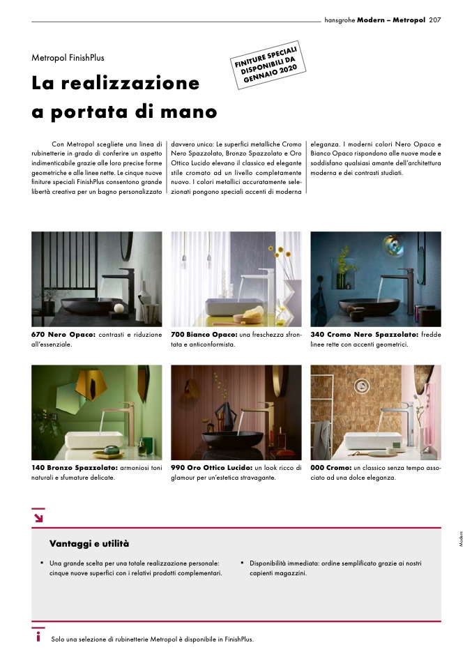 Solo una selezione di rubinetterie Metropol è disponibile in FinishPlus.