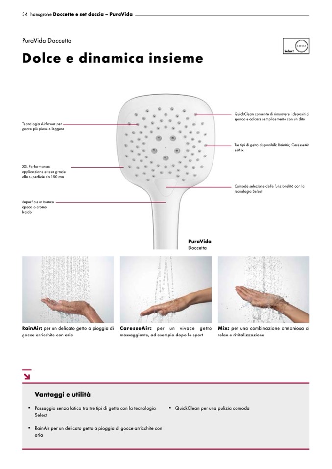 ▪ RainAir per un delicato getto a pioggia di gocce arricchite con