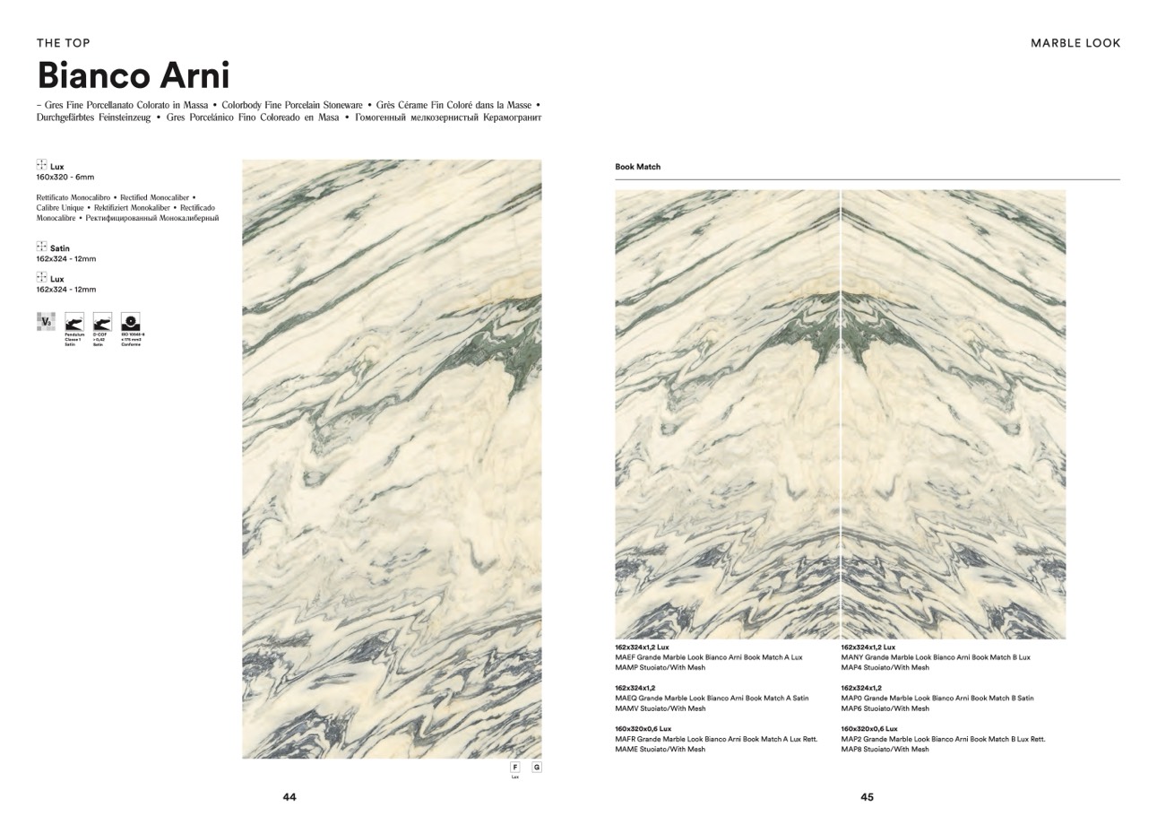 MANY Grande Marble Look Bianco Arni Book Match B Lux